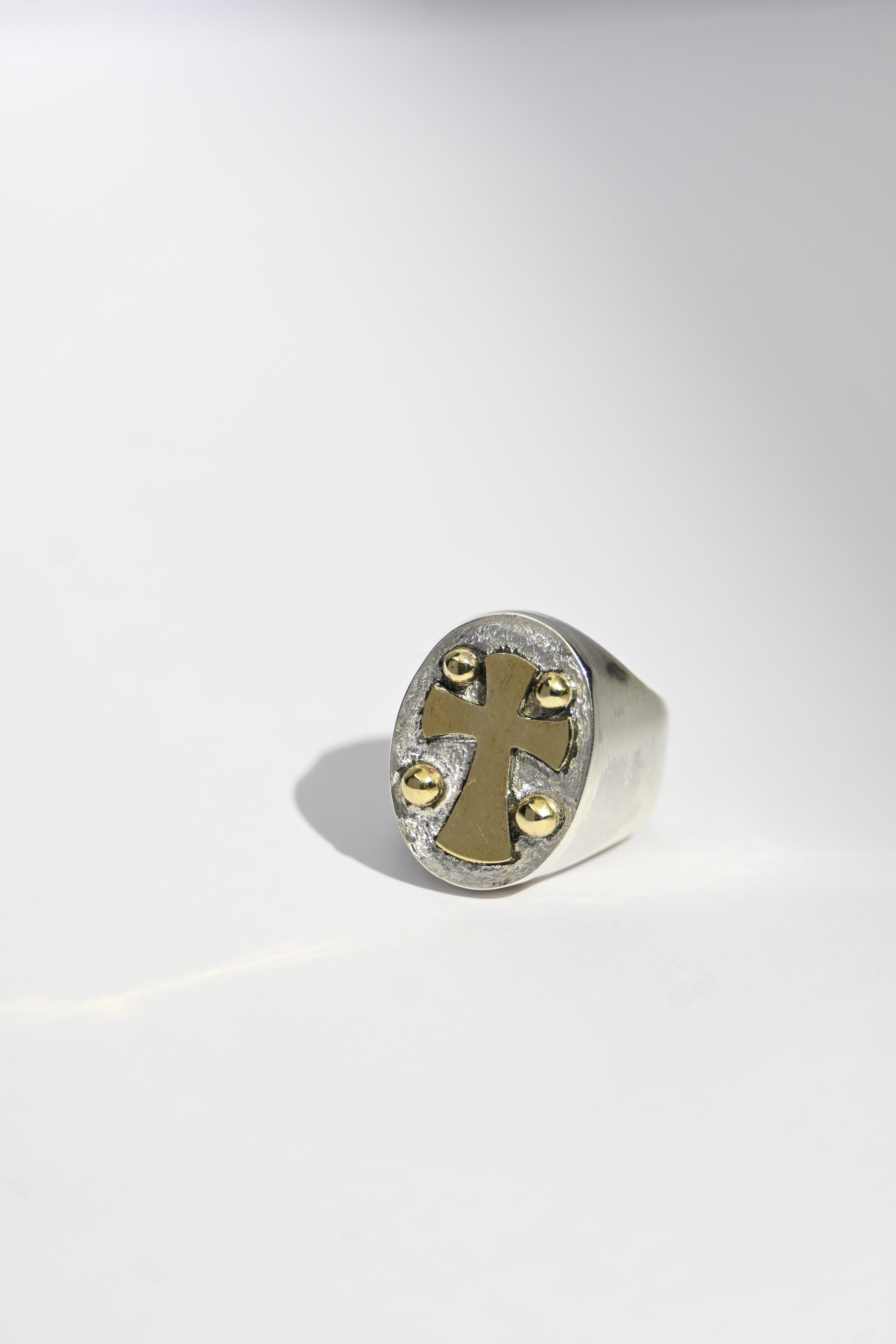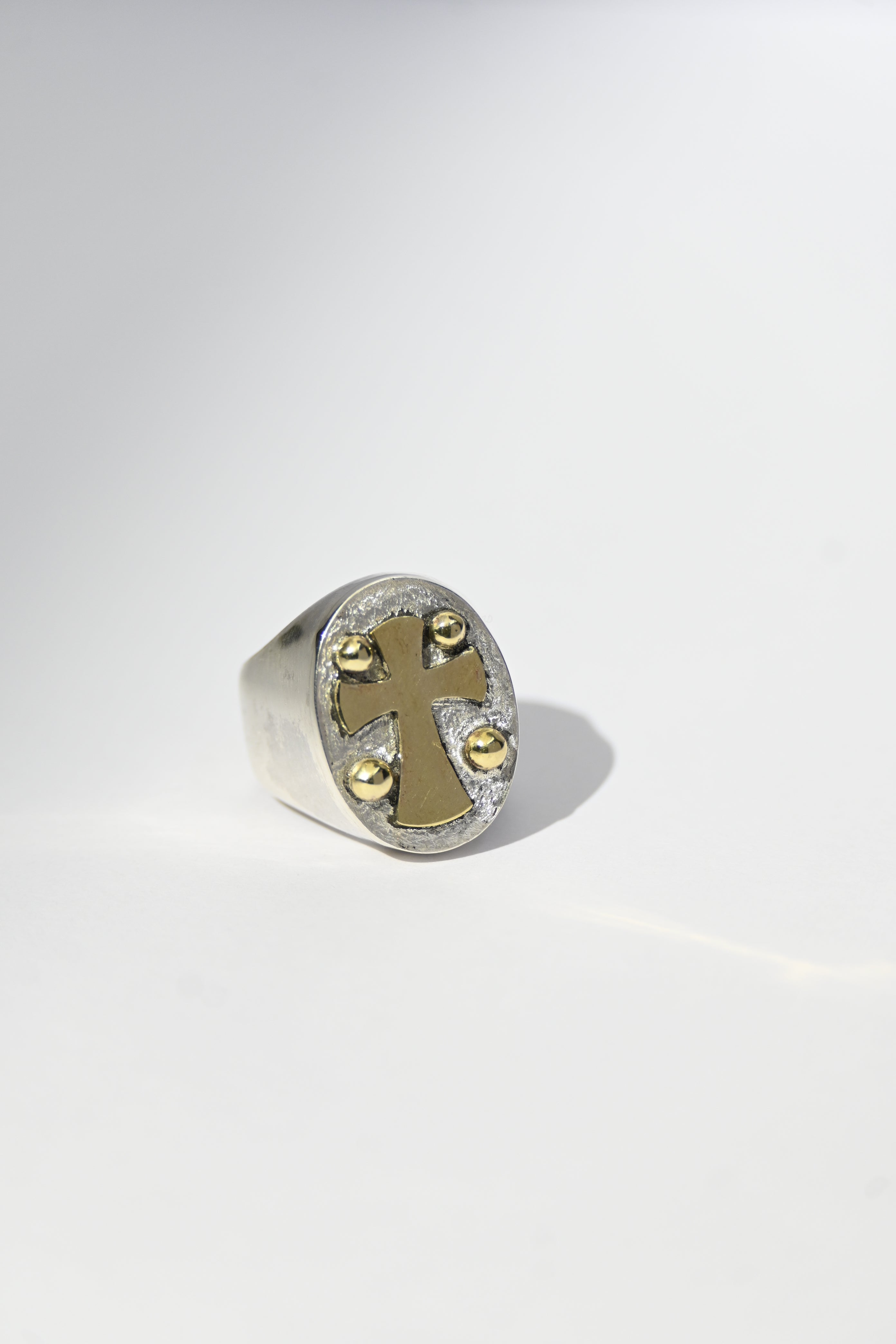 Anillo Sello Cruz Bicolor